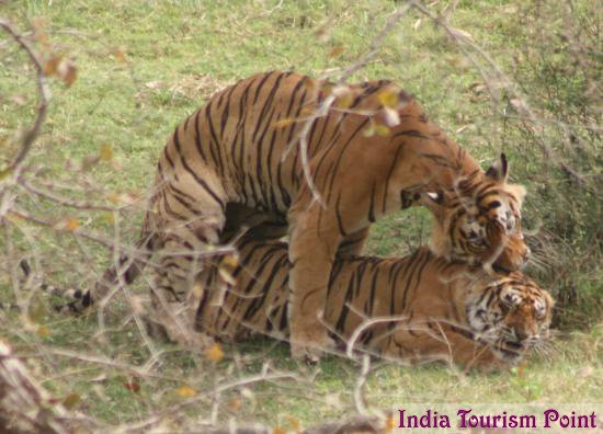 Ranthambore Tiger Reserve Rajasthan Tourism : The Ranthambore Tiger Reserve was declared a wildlife sanctuary in year 1957 and in year 1974 it gained the protection of “Project Tiger”. It received it’s status of a National Park in year 1981. The most frequented areas in the Park are around the beautiful lakes where a large number of the wild conjugates. One also gets a chance to drive through rolling grasslands, rushing streams, open scrubs, heavily wooded valleys and through deep ravines walled on either side with steep cliffs.